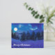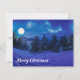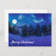 Mágica noche de invierno con luna llena y congelados cubiertos de abetos de nieve y abetos en invierno. Noche estrellada. Bosque de nieve por la noche a la luz de la luna.