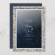 Esta tarjeta es una invitación de boda sofisticada y elegante que transmite un sentido de lujo y romance. El tema está inspirado en una noche estrellada, con un fondo oscuro y trazos blancos que crean un contraste y un efecto brillante. La tarjeta está enmarcada por un borde dorado brillante que añade riqueza y glamour. El texto está escrito en una fuente cursiva y elegante que coincide con la elegancia del tema. Los nombres de la novia y el novio están resaltados en letras más grandes, mientras que los detalles de la fecha, hora y ubicación se proporcionan a continuación. La tarjeta también incluye una nota de RSVP en la esquina inferior derecha, invitando a los invitados a responder a la invitación.