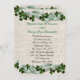 Invitaciones a bodas irlandesas sobre el fondo de lino con rocas de champú y cintas. Elegante plantilla de invitación para fiesta con tema irlandés. El fiesta del Día de San Patty también.