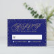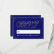 Pequeñas estrellas de oro purpurinoso brillan en nubes confetti alrededor del borde de esta hermosa tarjeta de respuesta azul marino profunda, con un guión de efecto purpurina dorado que dice "RSVP". Agradable, moda y encantadora. Ideal para un boda nocturno bajo las estrellas. Obra original de Colleen Michele. Por favor, tenga en cuenta que no hay un efecto real de purpurina de oro o hoja de oro en las estrellas y el guión; en esta invitación no se utilizará ningún purpurina, hoja de oro o tinta metálica.