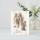 Una pelea de bolas de nieve entre dos chicas que se han escondido detrás de algunos árboles y un par de niños en el suelo en una vintage postal navideña de 1913.