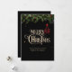 Una tarjeta de Navidad festiva negra y dorada emana elegancia y sofisticación, perfecta para celebrar la temporada navideña. La tarjeta presenta un fondo negro lujoso adornado con acentos dorados brillantes, como copos de nieve, estrellas y patrones intrincados. El centro de atención es un mensaje audaz y elegante de "Feliz Navidad" en dorado, que irradia calidez y alegría. Detalles adicionales, como un borde sutil o adornos dorados delicados, realzan el encanto del diseño. Esta tarjeta es ideal para transmitir deseos sinceros de Navidad con un toque de glamour, lo que la hace adecuada tanto para saludos personales como profesionales.