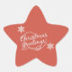 Navidades pegatinas de vacaciones con un fondo rojo, lujoso texto blanco que lee saludos de Navidad, y un par de copos de nieve blancos bonitos. ¡Tenemos las tarjetas de fotos, etiquetas de direcciones y sellos postales correspondientes de los Greetings de Navidad Roja!