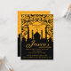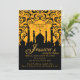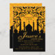 Noches árabes, Invitación dorada y negra. Fondo de estilo almohada dorada con una silueta de ciudad árabe.
