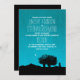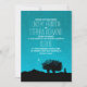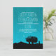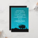 Romántica invitación de boda rústica con noche estrellada azul, luna, dos árboles creciendo juntos y silueta de pareja.