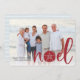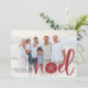 La tarjeta de vacaciones de estilo costero de moda añade un toque de playa a tus saludos navideños. Perfecto para compartir una foto de vacaciones, o para las familias que viven en lugares costeros, tropicales, cálidos o de la isla, este elegante diseño presenta su foto horizontal o paisajística favorita con "noel" colocado en letras rojas festivas y un dólar de arena tomando el lugar de la letra "o". Añada el mensaje de vacaciones de su personalizado y sus nombres o apellidos, junto con otras dos fotos y un mensaje de personalizado en la parte posterior.