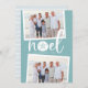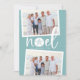 La tarjeta de vacaciones de estilo costero de moda añade un toque de playa a tus saludos navideños. Perfecto para compartir fotos de vacaciones, o para familias que viven en lugares costeros, tropicales, cálidos o isleños, este desenfadado diseño cuenta con dos fotos favoritas sobre un polvoriento fondo verde azulado con "noel" en el centro. Un dólar de arena reemplaza la letra "o" por un toque costero adorable. Añada el mensaje de vacaciones de su personalizado y sus nombres o apellidos, junto con un mensaje de foto y personalizado adicional en la parte posterior.