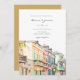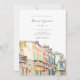 Esta invitación a la boda incluye una pintura acuarela del Barrio Francés, Nueva Orleans. Es perfecto para un boda o evento inspirado en Nueva Orleans o en el Mardi Gras.