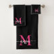 Disfrute de nuestro juego de toallas de baño con un monograma de escritura moderno y caliente de color rosado. Este lujoso juego de toallas está personalizado con su nombre en un elegante y moderno guión que le da un toque personalizado y de moda. El conjunto, hecho con tejidos absorbentes y ultraligeros, incluye bañera y toallas de mano, perfectas para añadir un toque de estilo a tu cuarto de baño. Duraderas y lujosas, estas toallas de moda combinan comodidad con personalización, haciendo que su tiempo de baño sea elegante y único.