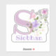 Personalice cualquier elemento con un Pegatina de recorte de diseño floral Nombre e Inicial. El nombre de ejemplo es Siobhan.