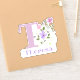 Personalice cualquier elemento con un Pegatina de recorte de diseño floral Nombre e Inicial. El nombre de ejemplo es Theresa.