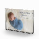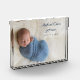 Bloque de fotos del bebé con guión de nacimiento de nombre azul personalizado.