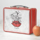 Caja de almuerzo gótica personalizada con un hermoso dibujo de tinta estilo tatuaje de labios rojos extraños y nombre de personalizable.