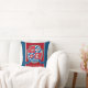 Nombre de Easton que significa escudo en almohada roja, azul, blanca y gris. Caballeros de la corona real gallega estilo escudo escudo letra monograma E nombre de arte almohada perfecta para bebé a niños y adolescentes. Personaliza con tu propio nombre empezando por E y nombra el significado o un mensaje para un toque personalizado. Lee Easton desde el lado este de la ciudad. Un guerrero invencible, inteligente y enfocado. © escudo estilo real único dibujo del escudo de armas, con un pájaro de cabeza, corona, estrella y monograma inicial E, arte gráfico y diseño de Sarah Trett www.sarahtrett.com para www.mylittleeden.com