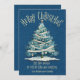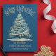 Tarjeta navideña de nombre de familia de árbol de acuarela navideña. Hermosa tarjeta de Navidades con una acuarela de árbol de Navidad en azul y verde. Listo para ser personalizado con su apellido.