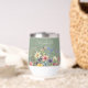Beba con estilo con nuestro vaso térmicos para vino con nombre y flores silvestres de color verde salvia —una combinación perfecta de belleza y función. Este elegante vaso térmico presenta un suave fondo verde salvia adornado con vibrantes flores silvestres de acuarela y mariposas en la parte inferior del vaso y su nombre encima.