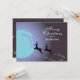 Envíe alegría de vacaciones a los Navidades con esta tarjeta de vacaciones personalizada. Personalízalo con tu nombre. Tarjeta de vacaciones para navidades con una noche mágica de Navidades. Los renos están volando en el cielo hacia la luna. La parte trasera está oscura con copos de nieve. Deseos de vacaciones personales para tu familia, amigos, compañeros de clase, compañeros de clase, profesores, etc. Guión blanco de moda Feliz Navidad desde - puedes cambiar el texto.