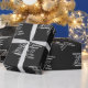 Añada un recordatorio del mejor regalo de la historia a sus regalos, estos Navidades con este sencillo y moderno envoltorio de regalo con nombres blancos de Jesús arreglados en forma de estrella sobre un fondo negro.