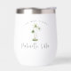 Impresione a sus huéspedes con estos hermosos tumblers personalizados de vino sin tallo, perfectos para su casa de playa o de alquiler de vacaciones. El diseño incluye un trío de palmeras de color agua verde con el nombre de la casa o el nombre de la familia bajo la letra cursiva manuscrita. Agregue el nombre de destino o la ciudad curvada en la parte superior.