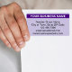 Las etiquetas de envío siempre se utilizan para paquetes o encomiendas y a veces para sobres de correo, pero también se pueden utilizar como material de marketing para promocionar su negocio o para promocionar su marca a los clientes. Etiqueta de envío morada personalizable con el nombre de su empresa resaltado, una etiqueta que puede utilizar para crear conciencia sobre el nombre de la marca. Enfatice el nombre de su empresa. Resáltelo. Hágalo visible para los clientes. Para personalizar esta etiqueta de envío, escriba el nombre de su empresa, dirección, número de teléfono, correo electrónico y sitio web o página de redes sociales. Por favor, revise la apariencia después de escribir el texto. Si la apariencia le resulta agradable, puede realizar su pedido ahora. Si necesita cambiar el tamaño o reposicionar el texto, por favor ajuste en la herramienta de diseño. También puede cambiar el color de resaltado, el color de fondo, el color de la fuente y el estilo de fuente en la herramienta de diseño
