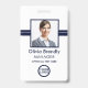 Nombre de la foto Tarjeta de identificación de empleado | Blanco Navy. Agregue sus datos personalizados a esta tarjeta de identificación de empleado personalice con la foto del empleado, nombre y título. Con una opción adicional para información adicional.