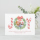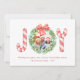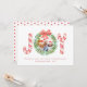 Esta es la tarjeta perfecta para enviar alegres saludos durante las vacaciones. Este bonito diseño está decorado con una acuarela pintada a mano de caramelos rojos y blancos y una corona verde con un bonito arco rojo. La parte posterior de la tarjeta incluye un patrón clásico de puntos polka de color rojo. (Personalice la foto, el mensaje y el año).
