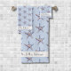 Hermosa pareja personalizado se llama Bath Towel Set con un colorido patrón de acuarela Starfish. Set de toallas de baño con un nombre de pareja personalizado en Starfish delicado sin fisuras.