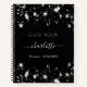 Un libro de visitas para una fiesta de cumpleaños femenino y glamurosa (o de cualquier edad). Un elegante fondo negro con estrellas falsas de plata. Añade tu nombre, edad 21/texto.