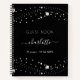 Un libro de visitas para una fiesta de cumpleaños femenino y glamurosa (o de cualquier edad). Un elegante fondo negro con estrellas falsas de plata. Añade tu nombre, edad 21/texto.