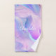 Fondo holgráfico rosa, morado y azul. Personalice y agregue su nombre y sus iniciales de monograma. El nombre se escribe con un guión de estilo con letras a mano.