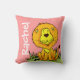 El cojín de almohadas de león de gato grande y juguetón sonriente es un regalo de cumpleaños único. La almohada es muy agradable en una sala de juegos o en una cama para niños pequeños. Personalizar con su propio nombre corto. En la actualidad se lee "Rachel" Pintado y diseñado por Sarah Trett.
