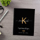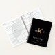 Un cuaderno de libros de cocina para una comida y tus recetas vegetarianas favoritas. Fondo negro, texto blanco y dorado. Decorado con una pequeña hoja de oro falsa. Personalice y agregue su monograma inicial, nombre y texto. El nombre está escrito con una escritura a mano a la moda, con letras con toques. Para que los cambios sólo eliminen el nombre del ejemplo, deje los espacios o la emoji delante y después del nombre.