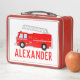 ¿A tu hijo le encantan los bomberos? El Fire Truck Child's Name Metalizado Lunch Box diseñado por la Enchantelegante Design Company es perfecto para el futuro bombero o bombera en su vida. Este diseño cuenta con un camión de bomberos rojo brillante con una escalera. Personaliza tu elección de nombre en un texto rojo brillante.