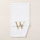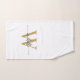 Toalla de mano personalizada con monograma inicial de nombre y apellido con estilo femenino moderno blanco y dorado. Consta de un nombre (o apellido) en un estilo de letra manuscrita con florituras (o caligrafía) con monograma inicial en dorado y negro sobre fondo blanco. Un regalo elegante y femenino ideal para estrenar casa, también para cumpleaños, fiesta de cumpleaños de sweet 16, despedida de soltera, ducha de novia, boda, día de la madre, aniversario y fiesta de graduación. Es ideal para la chica que le gustan las cosas elegantes y con estilo.