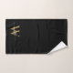 Toalla de mano personalizada con estilo femenino moderno, negro y dorado, con monograma inicial de nombre y firma. Con un primer nombre (o apellido) en un estilo de letra manuscrita con fuente de cola de cisne (o caligrafía) con monograma inicial en dorado y blanco sobre negro. Un regalo femenino y elegante para inauguración de hogar, también para cumpleaños, boda, despedida de soltera, día de la madre, ducha de novia, fiesta de cumpleaños de 16 años, regalo de aniversario y para fiesta de graduación. Y es para la chica que le gustan las cosas elegantes y con estilo.