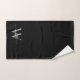 Toalla de mano personalizada con estilo femenino moderno negro y gris con monograma inicial de nombre y apellido con letra script. Consta de un primer nombre (o apellido) en un bonito estilo de letra manuscrita con fuente de cola de cisne (o caligrafía) con monograma inicial en gris y blanco sobre negro. Excelente regalo femenino y con estilo para inauguración de hogar, también para cumpleaños, boda, despedida de soltera, día de la madre, ducha de novia, fiesta de cumpleaños de sweet 16, regalo de aniversario y para fiesta de graduación y es para la chica que le gustan las cosas elegantes y con estilo.
