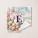 Monograma y tipografía de nombre en flores acuarelas y conchas con el mar en el fondo en los colores de pasteles Flores acuarelas y conchas por el mar en suaves colores pasteles. Una bella pintura acuarela moderna de diferentes flores y conchas junto al mar en suaves colores pastel con monograma de personalizable y tipografía de nombre o texto