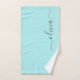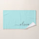 Toallas de baño con nombre de monograma de escritura simple en azul aguamarina. Esto hace que el regalo perfecto para cumpleaños dulces 16, boda, ducha de novia, aniversario, ducha de bebé o fiesta de despedida de soltera para alguien que ama el lujo glamoroso y los estilos chic.