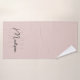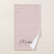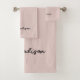 Sumérjase en el lujo con este moderno juego de toallas de baño con escritura rosada Rubor Monograma Minimalista. Con su monograma personalizado con elegantes iniciales y su nombre en un estilo moderno y elegante, este conjunto le aporta un toque sofisticado a su cuarto de baño. El suave tono beige complementa cualquier decoración, lo que lo convierte en un lugar elegante e intemporal para su casa o en un regalo para alguien especial.