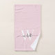 Toalla de mano personalizada con estilo moderno y femenino, rosa suave con monograma inicial de nombre o firma personalizada. Consta de un nombre (o apellido) en una tipografía de letra manuscrita con florituras (o caligrafía) con monograma inicial en blanco y negro sobre fondo de color rosa suave. Excelente regalo femenino y elegante para inauguración de casa, también para cumpleaños, despedida de soltera, boda, día de la madre, fiesta de cumpleaños de 16 años, fiesta de soltera, aniversario y graduación. Y es para la chica que le gustan las cosas elegantes y con estilo.