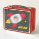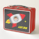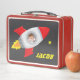 Un astronauta lindo saludando desde la cabina de un cohete volador mientras se embarca en una aventura espacial. Personalizar con el nombre del niño.