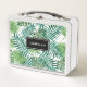 Cuidada Colorida Palm Tree Tropical Niños verdes Nombre caja de almuerzo Metalizado
