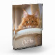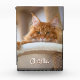 Personalizar el moderno y caprichoso estilo de letra para crear tu propio bloque de fotos. Hay una capa de "sombra de caída" que utiliza un color para coincidir con una tabla naranja. Puede personalizar del color de la letra en ambas capas de texto... o eliminar cualquiera de los elementos de texto que no desee. Añadir su propia foto mascota de formato vertical. Este lindo gato es un tabby naranja de Maine Coon.