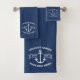 Disfrute del lujoso ambiente de este conjunto de toallas de baño náuticas personalizadas. Estas toallas, elaboradas con algodón de primera calidad y absorbente, cuentan con un diseño clásico de la rueda del barco y están personalizadas con el nombre del barco, creando una experiencia de spa en su propio baño. El color azul marino aporta un toque de elegancia a la costa. Un regalo perfecto para los propietarios de barcos o para quienes aprecien el confort de lujo.