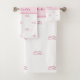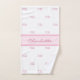 Un fondo blanco. Personalice y agregue sus letras de monograma, iniciales y nombre. Letras de color rosa. El nombre está escrito con una escritura de estilo con letras a mano moderna. El monograma como patrón de fondo.