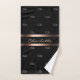 Negro de diseño con un marco de color oro rosa, de aspecto metálico falso. Personalice y agregue sus letras de monograma, iniciales y nombre. Letras de color oro Rosa. El nombre está escrito con una escritura de estilo con letras a mano moderna. El monograma como patrón de fondo.