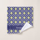 Toalla marroquí de motivos florales, azul y amarillo modernos. Personaliza con tu nombre.