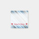 Este diseño de notas presenta varios tonos de colores en azul y gris. También presenta un nombre de personalizable cerca de la parte inferior en texto rojo, entre dos formas cardíacas. [~Z0000122]