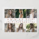 La moderna tarjeta de invitación de graduación incluye seis de tus fotos favoritas alineadas una al lado de la otra en dos filas, con el nombre de tu graduado mostrado en el centro con letras de Relieve metalizado de oro rosa. Personalice su curso escolar y de graduación a través del centro. Añade un mensaje personal y una foto adicional al dorso.