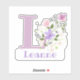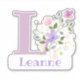 Personalice cualquier elemento con un Pegatina de recorte de diseño floral Nombre e Inicial. El nombre de ejemplo es Leanne.